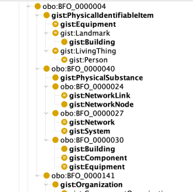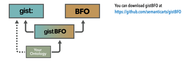 The other advantage, suggested by the dotted line in the “how to get started” section, is that if you have defined all your concepts in gist terms, and you need to implement in a non BFO environment you can just drop the import of gistBFO and the BFO references will disappear, and nothing else needs to change.
