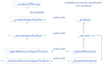 This Frameworx pattern models the way products are constructed from the raw materials represented by Resources, with Services as an intermediary. The diagram below shows how we implemented the pattern in a knowledge graph:
